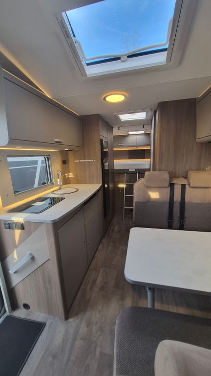 - PRO Paket: Optik Paket 1: Stoßfänger lackiert, Skid Plate glänzend Schwarz, NebelscheinwerferOptik Paket 2: Lenkrad & Schaltknauf in Lederausführung, Armaturentafel mit Applikationen (Techno-Trim), 16" Alufelgen Bi-Color 2. AußenstauraumklappeSicherheitspaket: Zwei Kopfstützen und zwei Beckengurte mittl. Sitzbank entgeg. FahrtrichtungGroßer KühlschrankBasic Paket: Panoramadachhaube 70 x 50 cm, Klarglasdachhaube 40 x 40 cm, Fliegengittertür (einteilig), Komfort-Eingangstür mit Fenster und Verdunkelung, Bridge Light